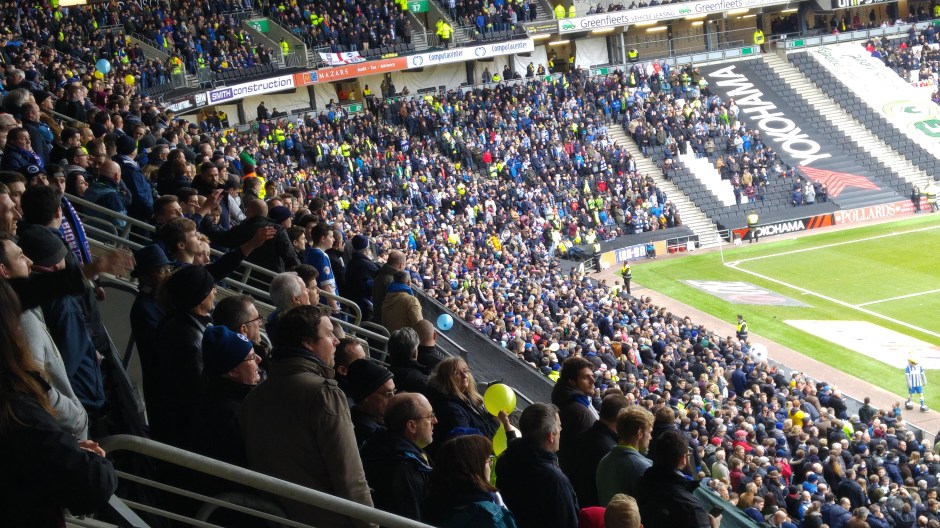 When the away support makes up one third of the match attendance, it can really spur a team on. That could not have been more evident than at the Stadium:MK yesterday, where Brighton and Hove Albion held on to win 2-1 against MK Dons.